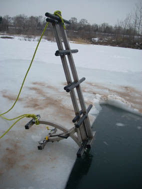 Attached to ice with ladder extended